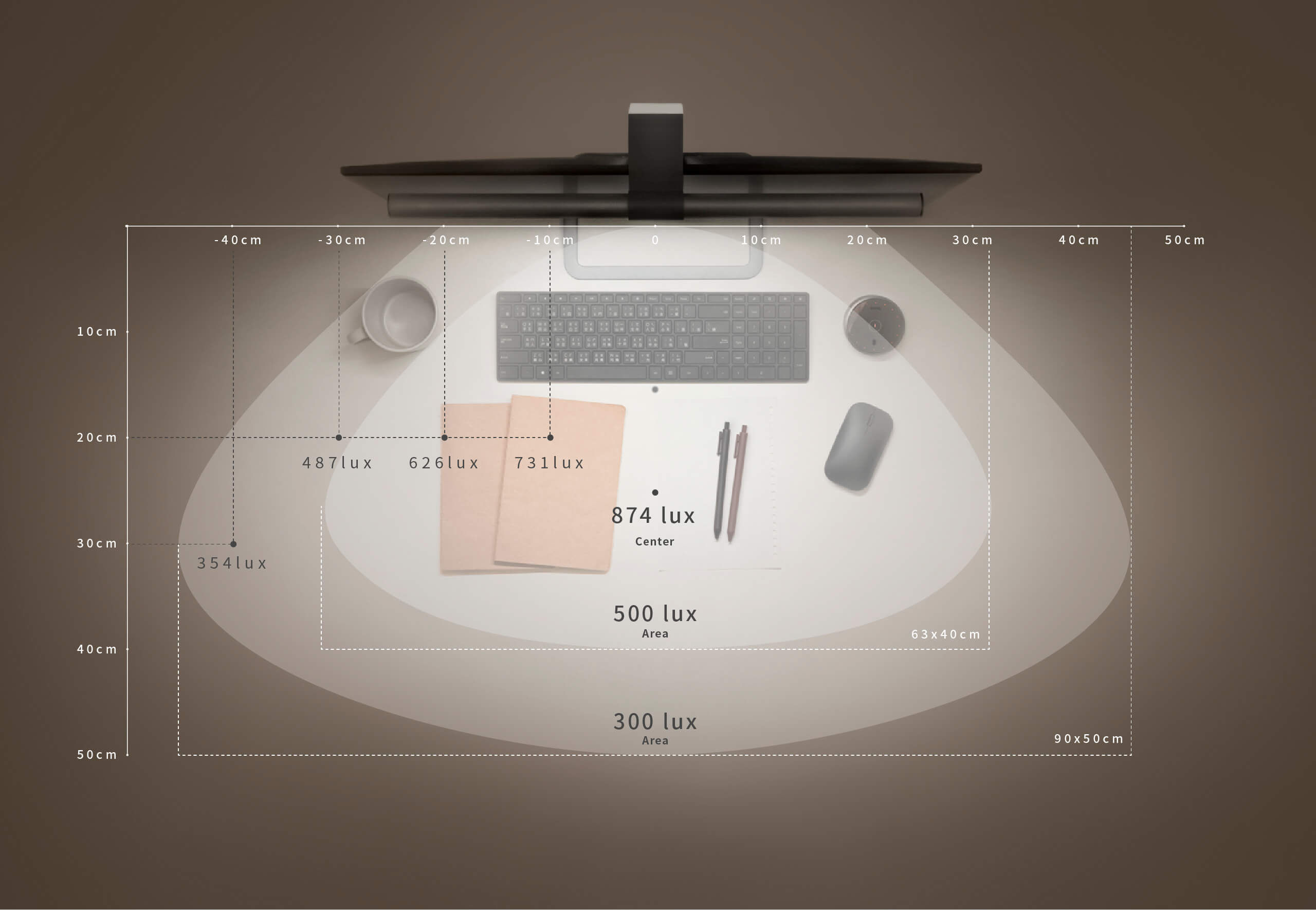 Asymmetric optical design only illuminates the desk without causing screen reflection. The Back Light eliminates the contrast between the monitor and the surrounding.