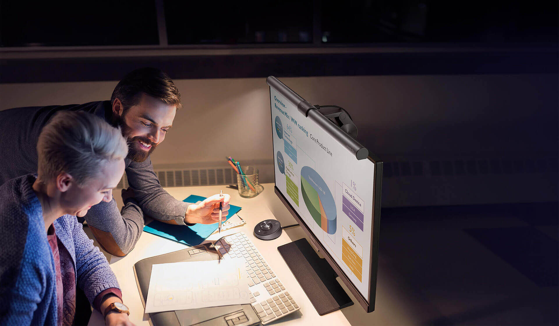 Asymmetrical optical design that eliminates reflective glare off the screen, only illuminating the desk.