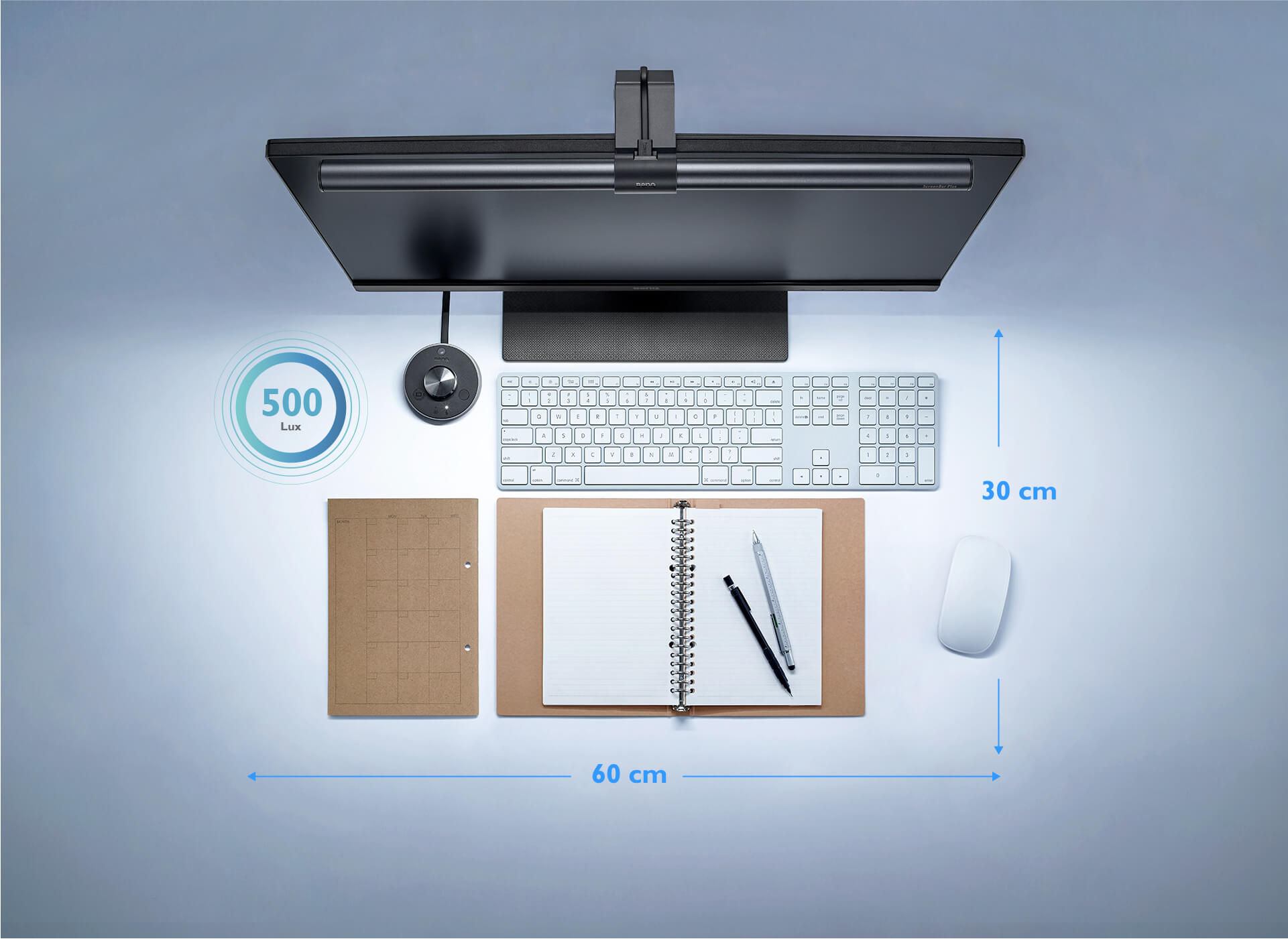 Adjustable color temperature and auto dimming by bulit-in light sensor in the destop dial, providing the best lighting environment.
