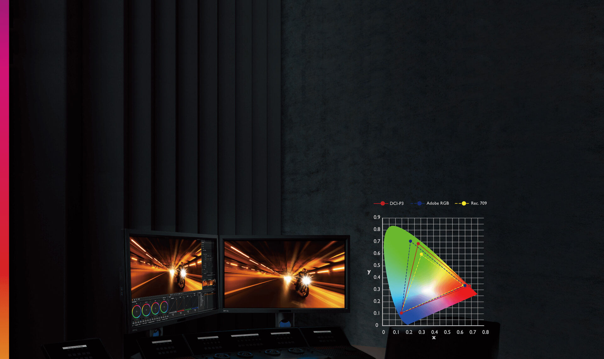 GamutDuo enables you to view content simultaneously in different color spaces side-by-side for comparison. Switch to PIP/PBP mode to enable GamutDuo.