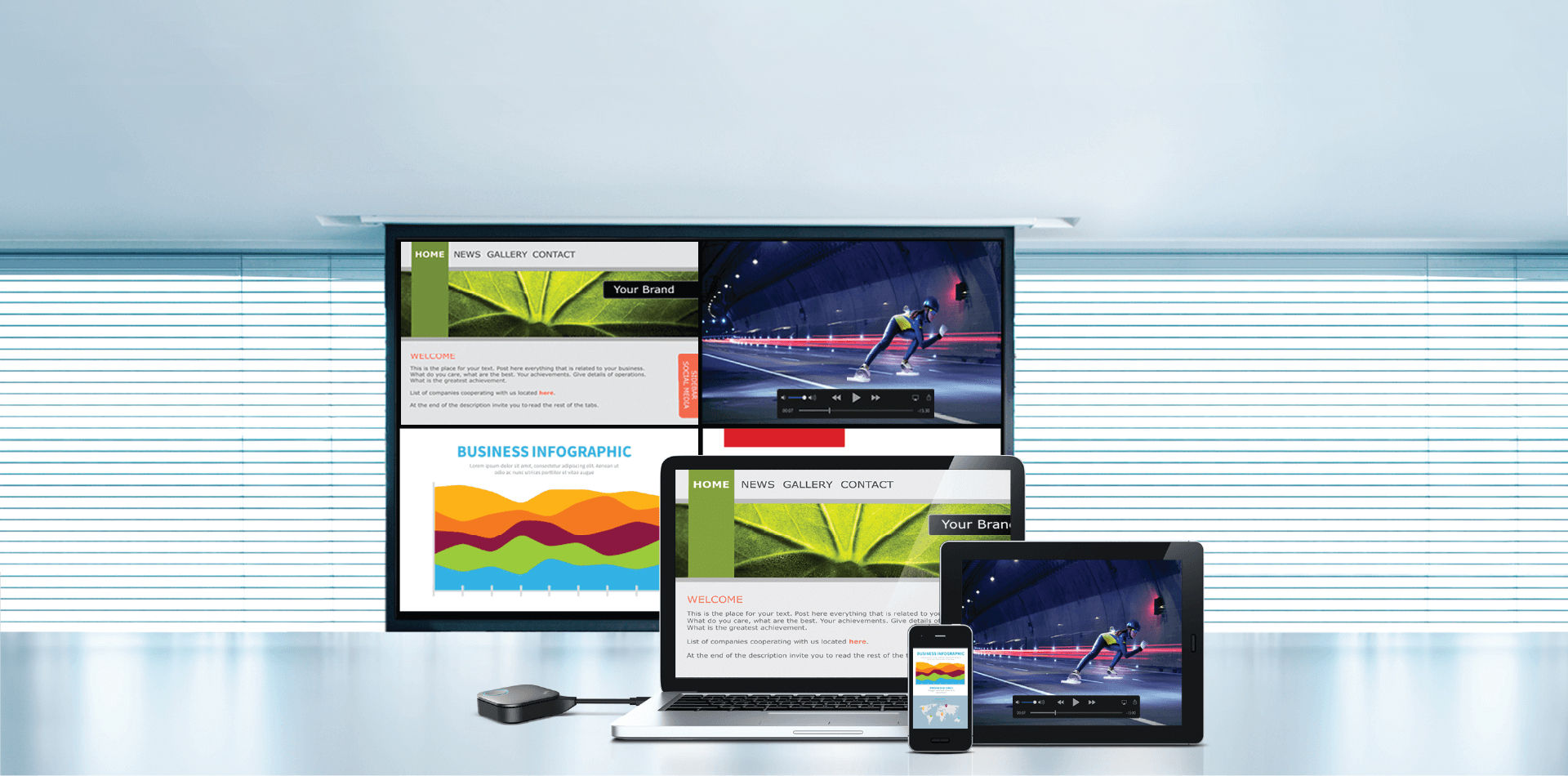 Using HDMI protocol channel to deliver HDCP-encrypted content, InstaShow WDC20C makes it secure to prevent any transmitted digital content from being copied. Presenters can thus connect their own devices to the HDCP-compatible InstaShow WDC20C without security issues.
